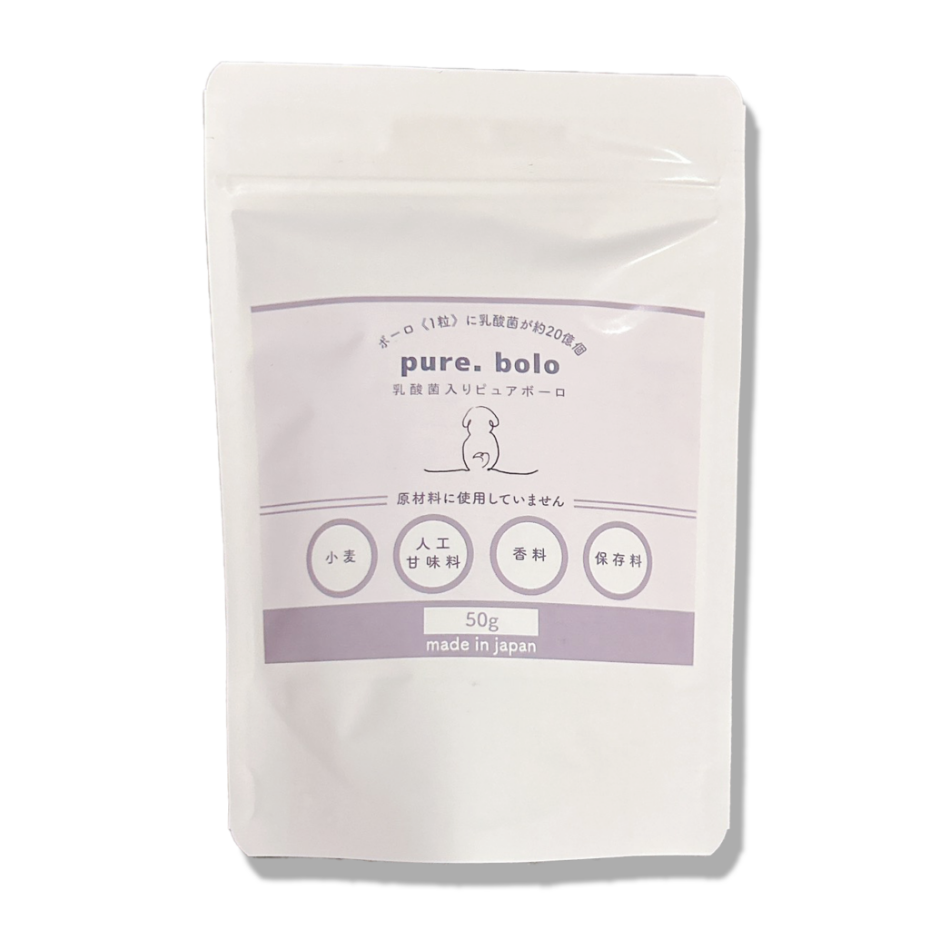 ピュアボーロは、人間の食品と同じ工場で作られており、わんちゃんも人も美味しく食べられる安心おやつ!